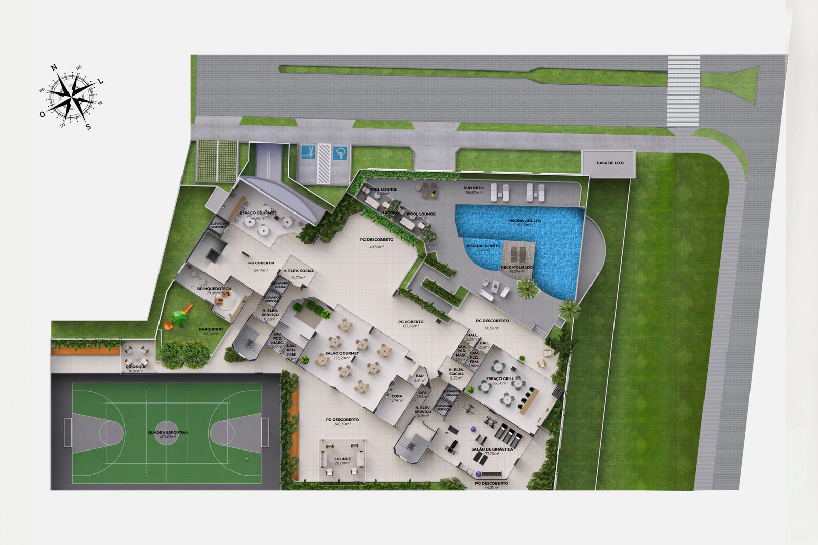- Possibilidade de integração da sala com a varanda com nivelamento de piso e teto